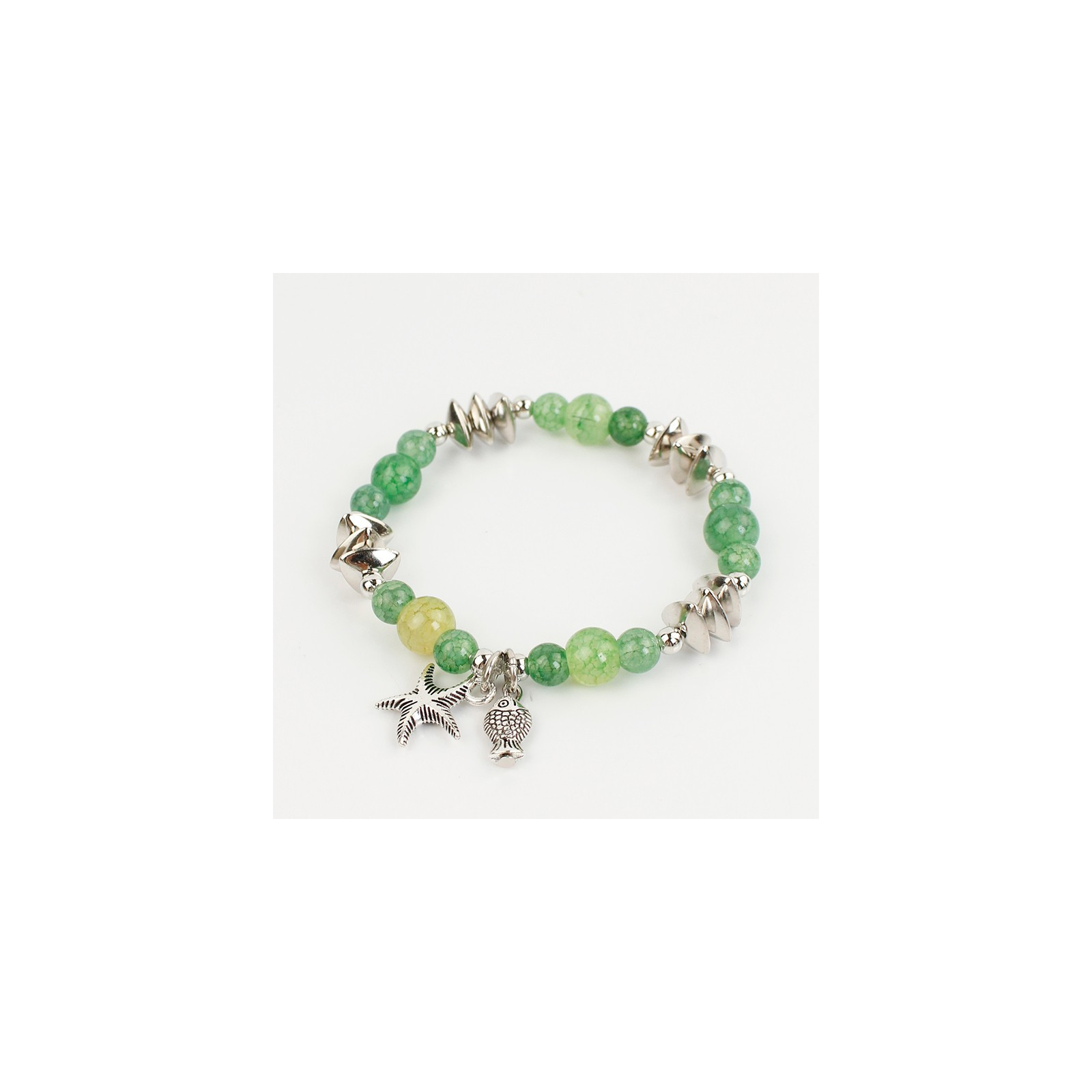 Pulsera elástica una de bolitas de vidrio diferenciadas, con dijes exclusivos de fundición combinado con piezas exclusivas de CCB níquel.