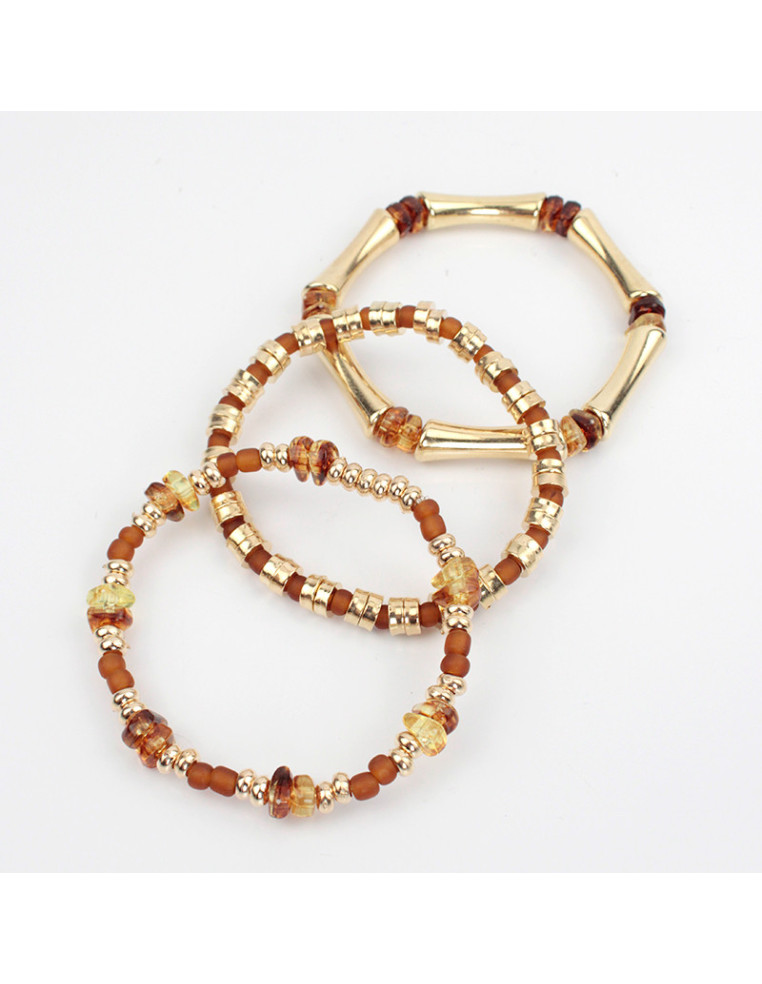 Set de tres pulseras elásticas de escallas de acrílico combinadas con mostacillas y piezas diferenciadas de CCB.