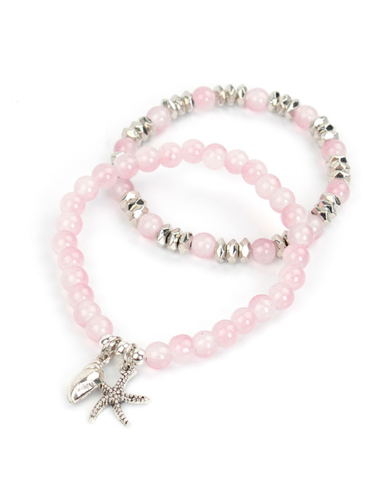 Set de dos pulsera elástica de cuentas de vidrio exclusivas combinadas con piezas de CCB.