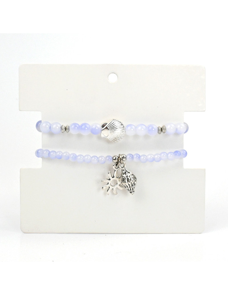 Set de dos pulseras elásticas de bolitas de vidrio, combinadas con piezas pasantes de CCB y dijes de fundición marinos.