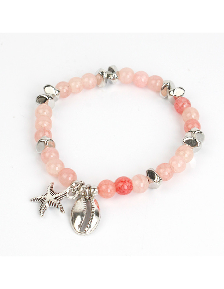 Pulsera elástica de bolitas de vidrio, con piezas orgánicas de CCB y dijes marinos de fundición.