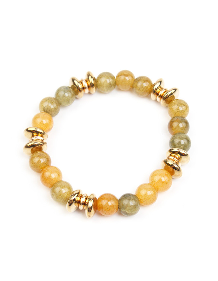 Pulsera elástica de bolitas de vidrio, con pasantes de CCB dorados.