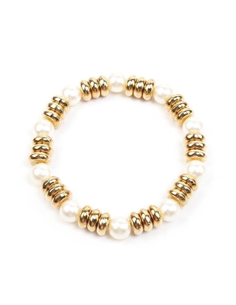 Pulsera elástica de perlas y pasantes de CCB dorado.