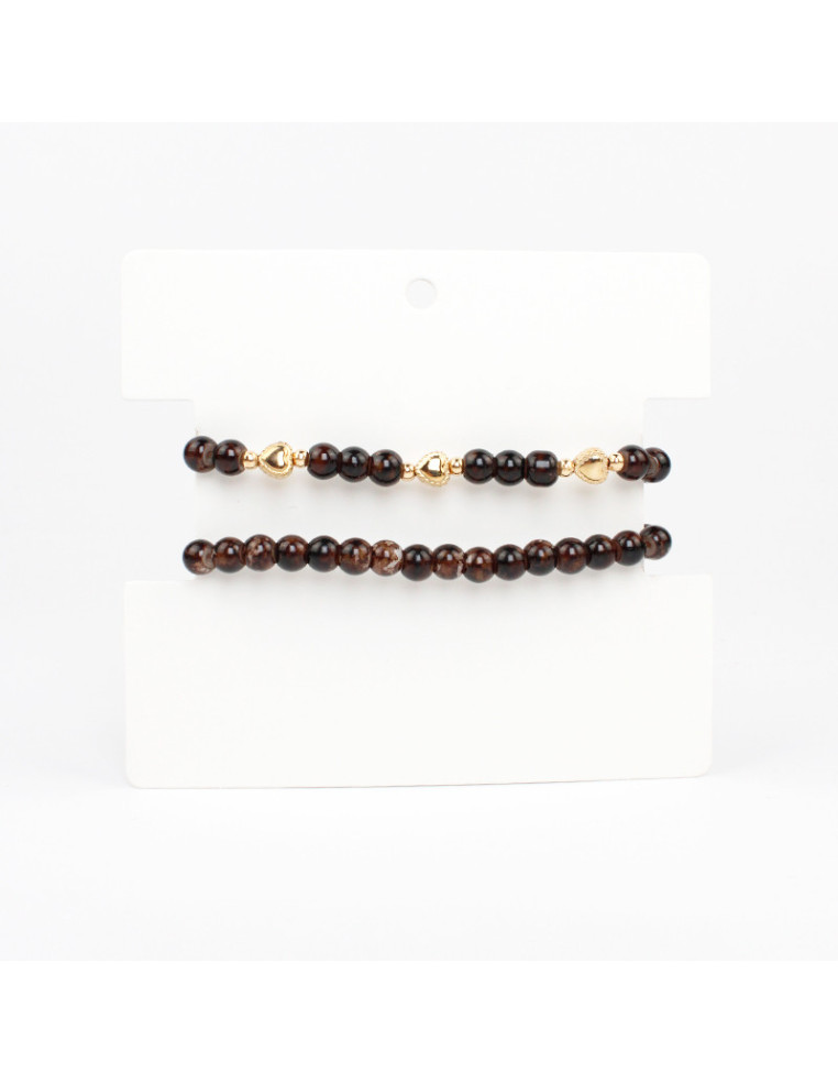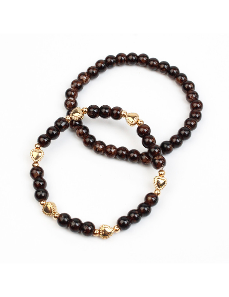 Set de dos pulseras elásticas de bolitas de vidrio y pasantes con forma de corazón.