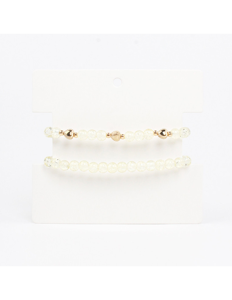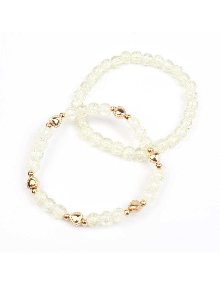 Set de dos pulseras elásticas de bolitas de vidrio y pasantes con forma de corazón.