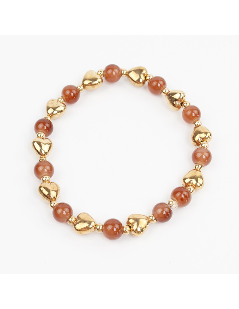 Pulsera elástica de bolitas de vidrio, dijes pasantes con forma de corazón y pasantes de CCB.