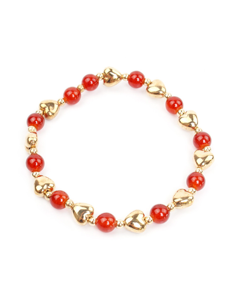 Pulsera elástica de bolitas de vidrio, dijes pasantes con forma de corazón y pasantes de CCB.