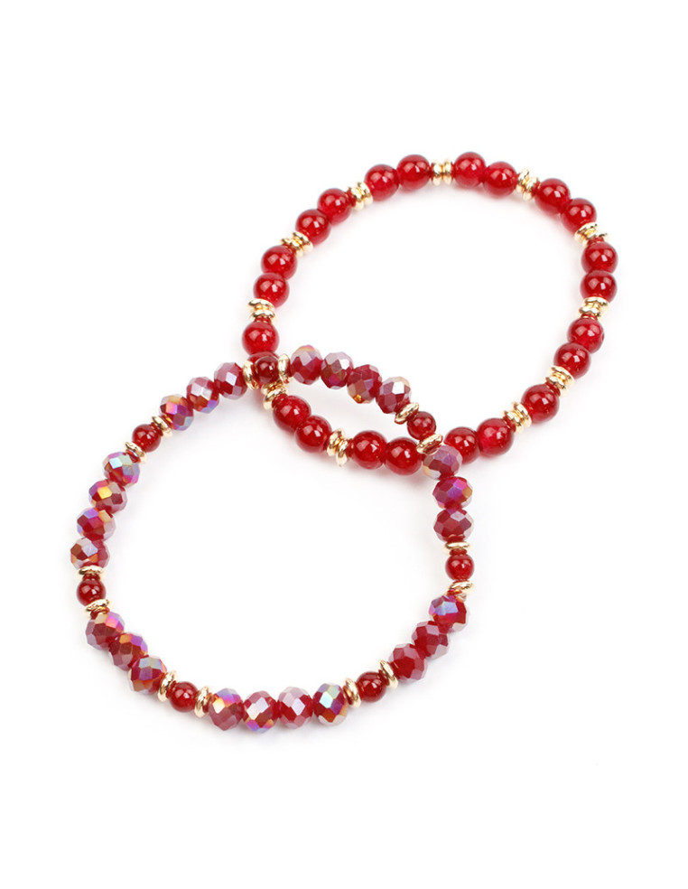 Set de dos pulseras elásticas de roca de cristal, bolita de vidrio y pasantes de CCB dorados.