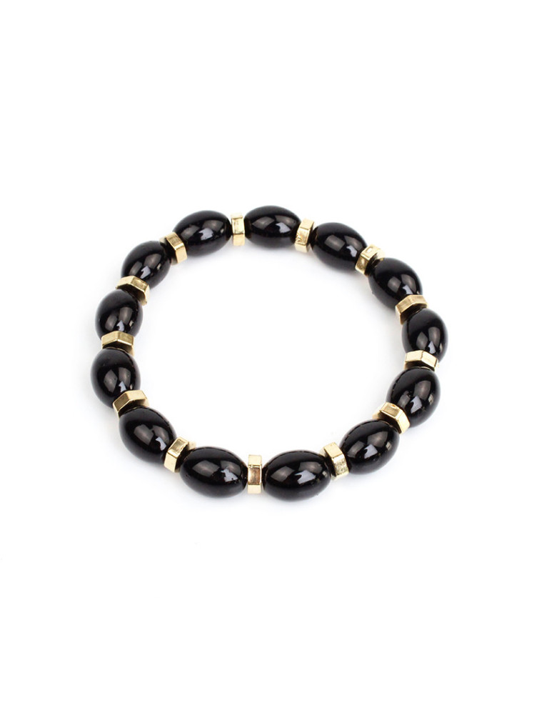 Pulsera elástica con cuentas de vidrio exclusivas y piezas de CCB pasantes.