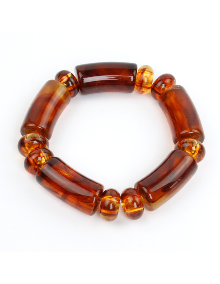 Pulsera elástica de tubos y cuentas de acrílico caramelo.