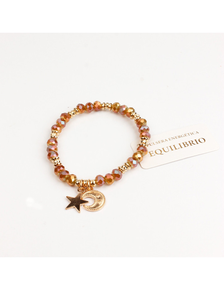Pulsera elástica de donas de vidrio energéticas con dijes de fundición exclusivos en forma estrella y luna.