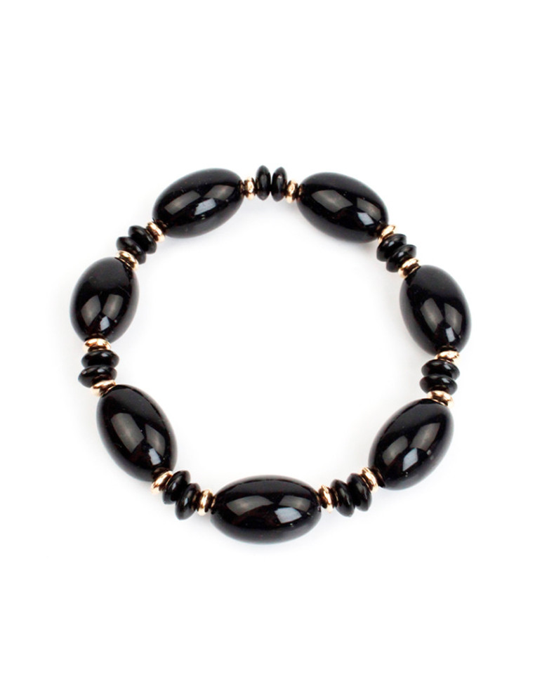 Pulsera elástica intervenida con dijes exclusivos de acrílico y piezas pasantes de CCB.