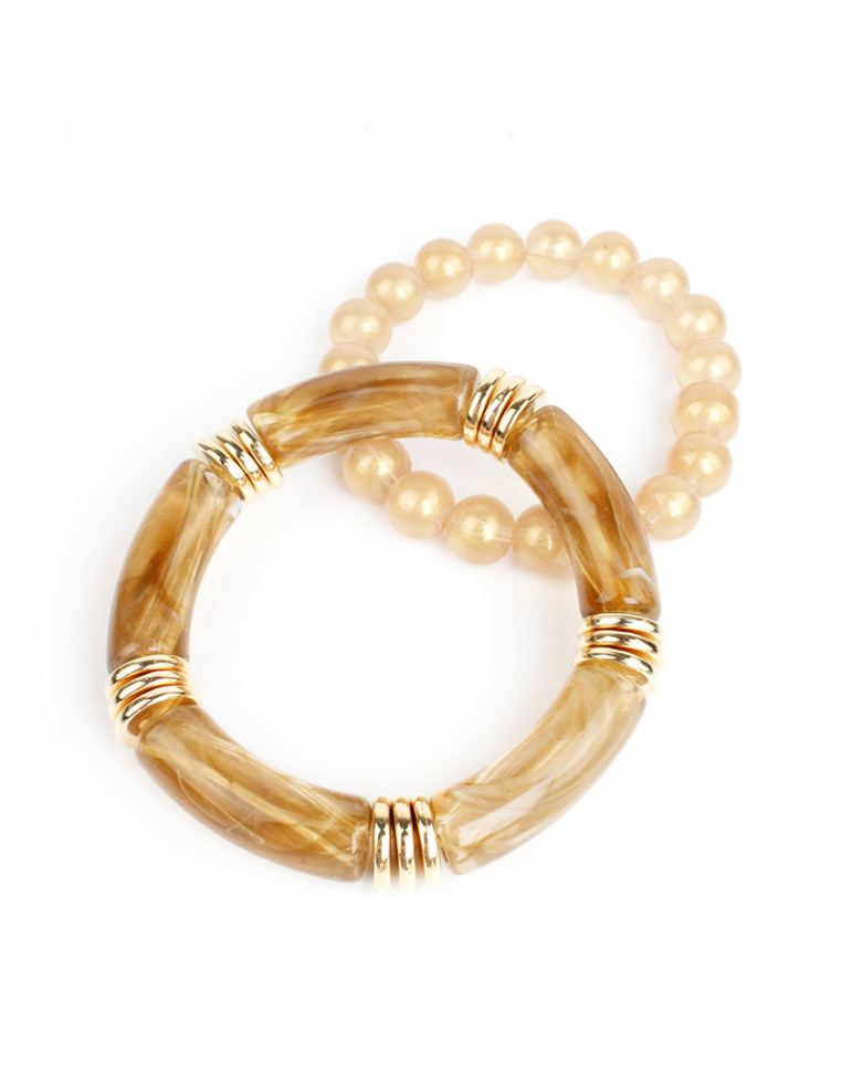 Set de dos pulseras elásticas de piezas de acrílico XL combinadas con pasantes de CCb y bolitas de vidrio.