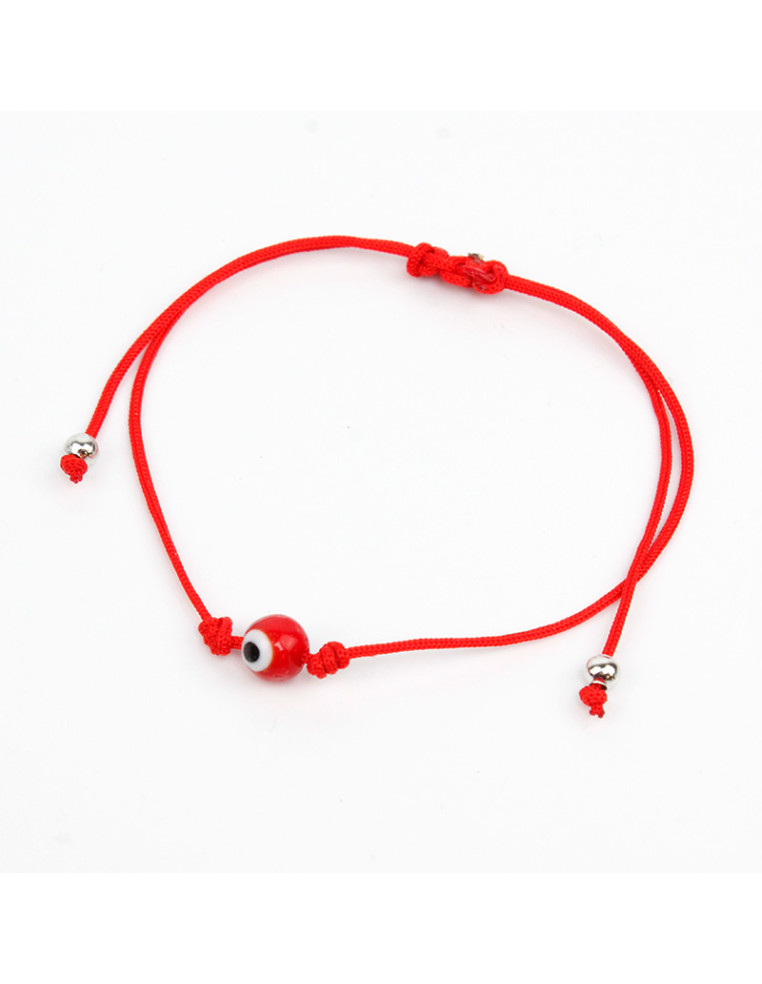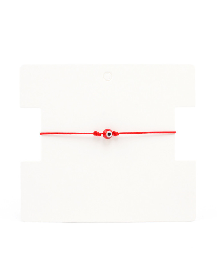 Pulsera de hilo con ojo turco de vidrio y cierre con nudo macramé.