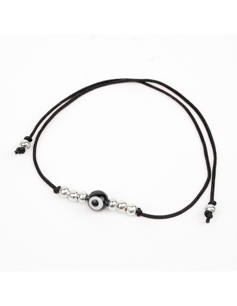 Pulsera amuleto de hilo con ojo turco de vidrio.