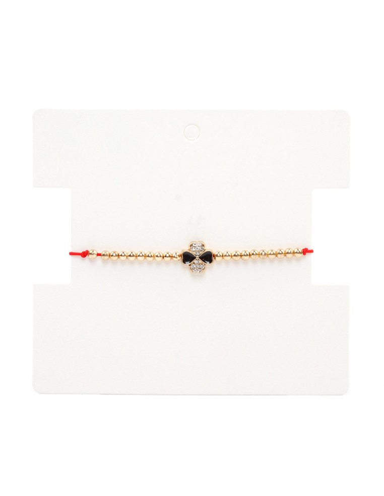 Pulsera de hilo con dije exclusivo de strass con forma de trébol y cierre macramé.