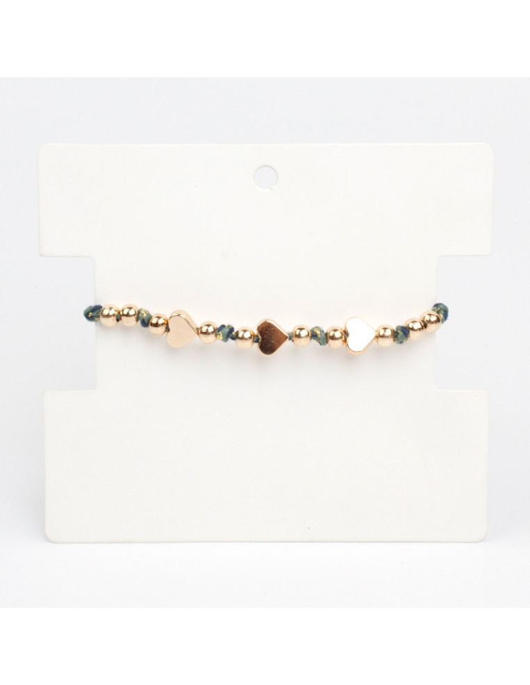 Pulsera de hilo, con dijes y piezas pasantes de CCB dorado.