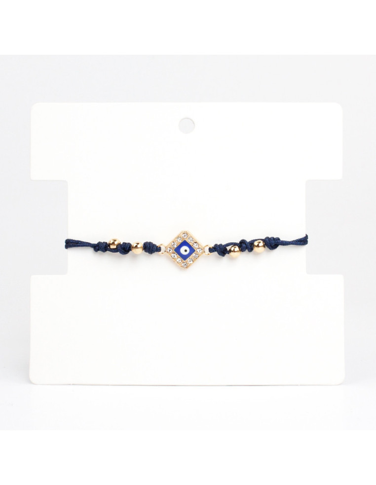 Pulsera de hilo con dije de strass doble agarre, bolitas pasantes de CCB y cierre con nudo exclusivo.