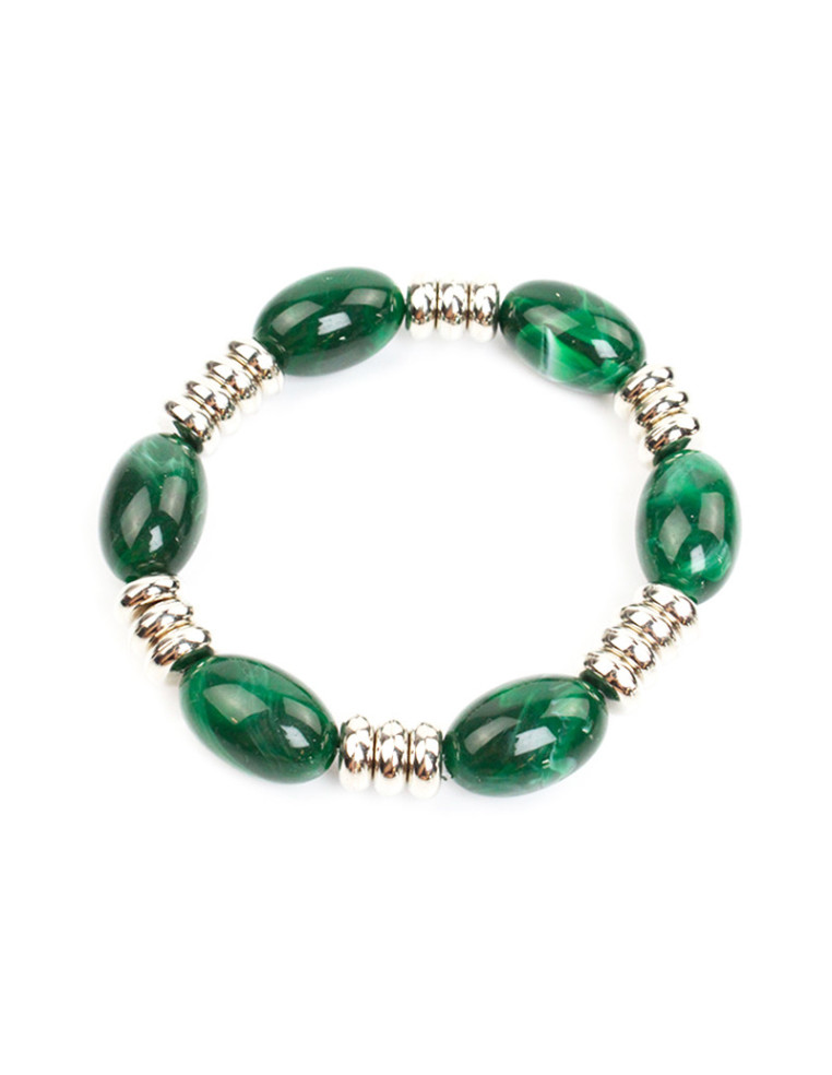 Pulsera elástica intervenida con dijes exclusivos de acrílico y piezas pasantes de CCB.
