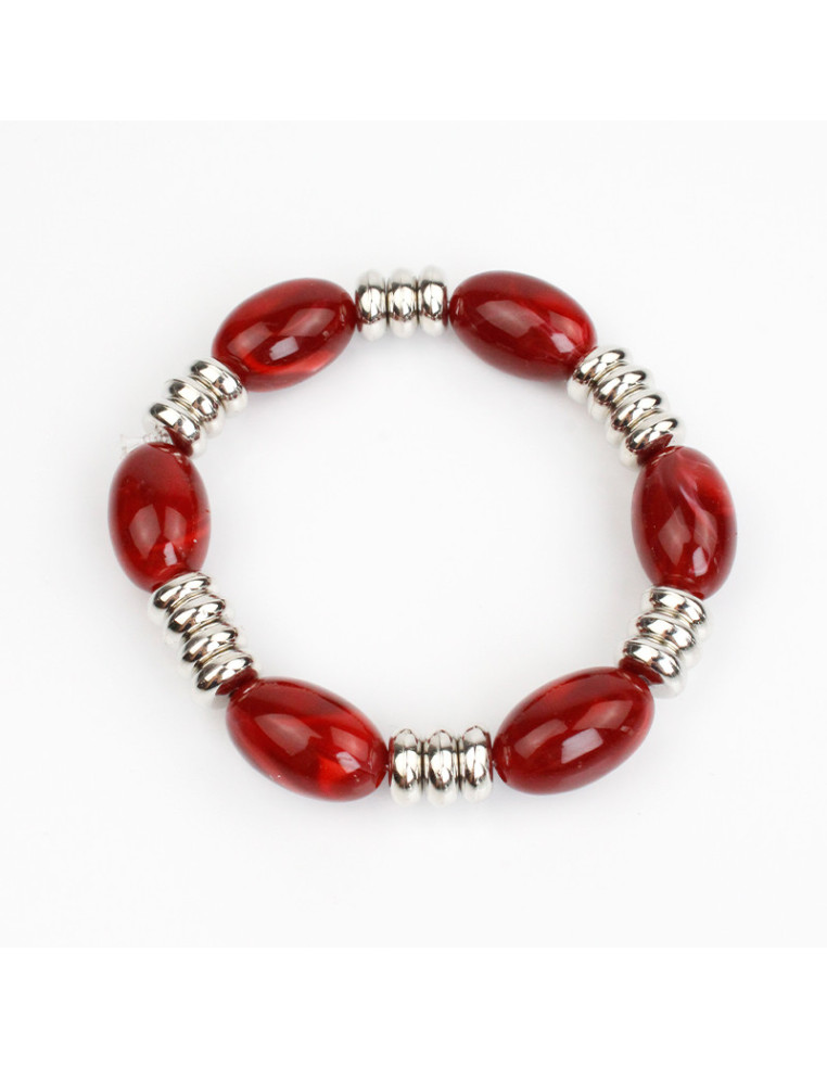 Pulsera elástica intervenida con dijes exclusivos de acrílico y piezas pasantes de CCB.