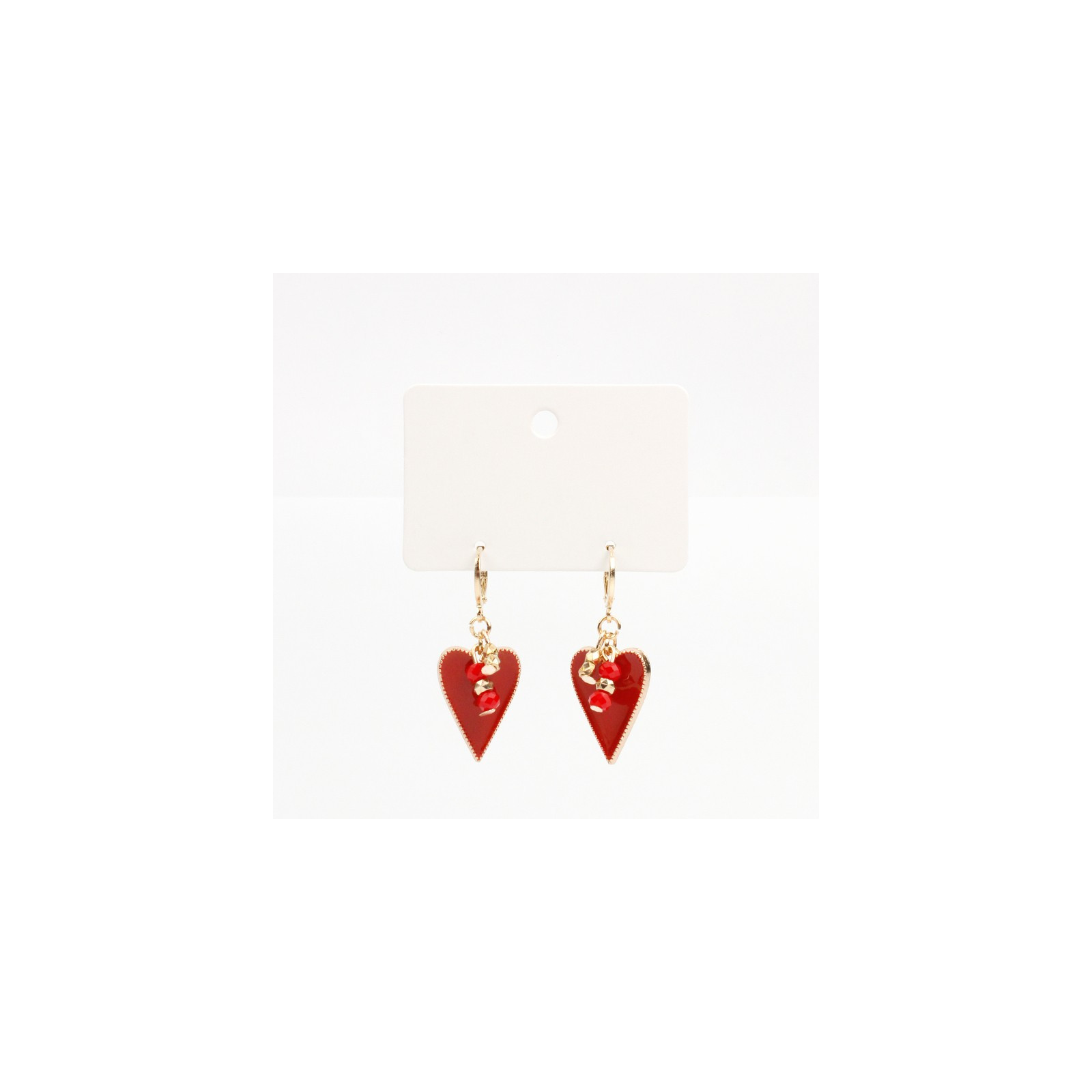 Aro trendy de argollas con dije exclusivo con forma de corazón pintado a mano y rocas de cristal.