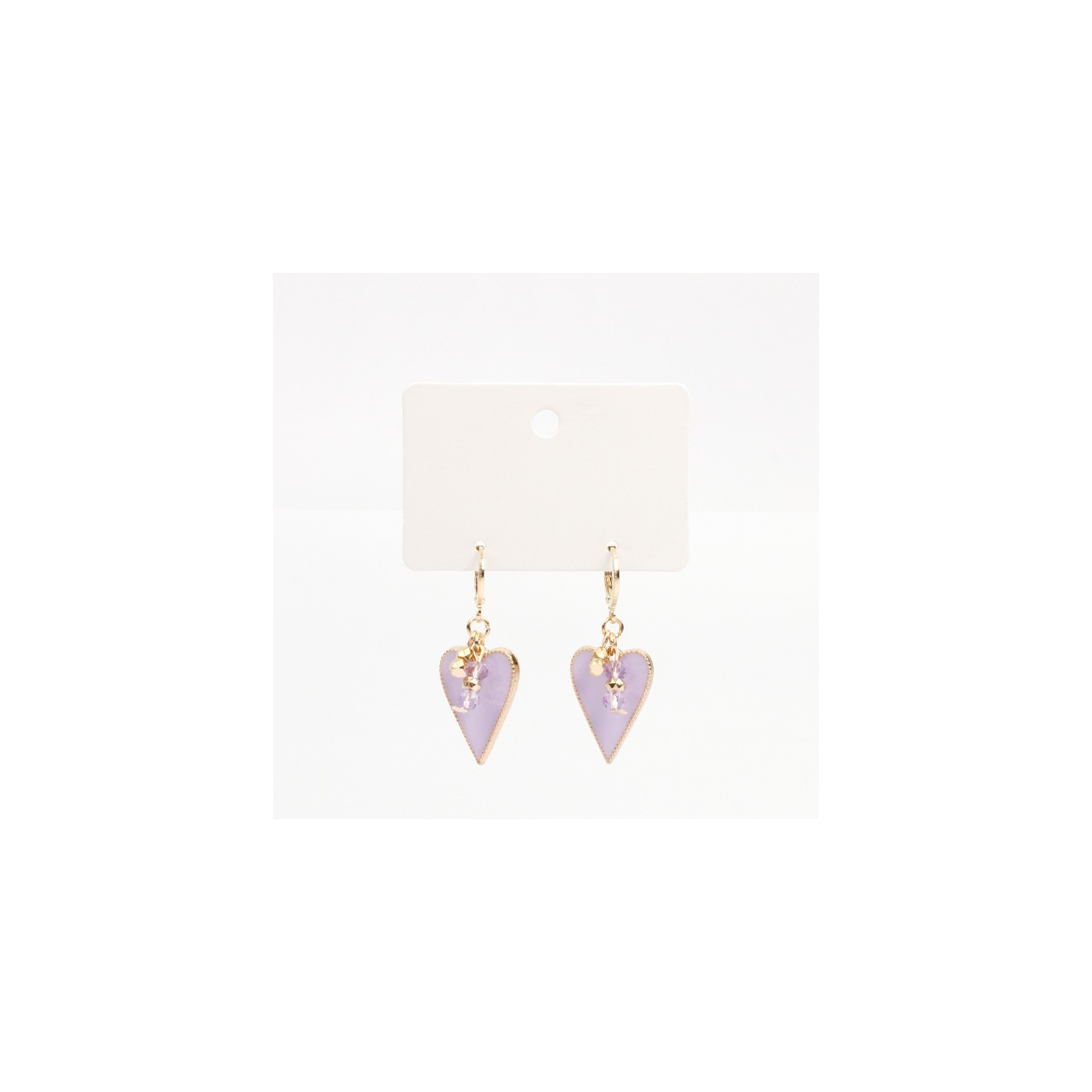 Aro trendy de argollas con dije exclusivo con forma de corazón pintado a mano y rocas de cristal.