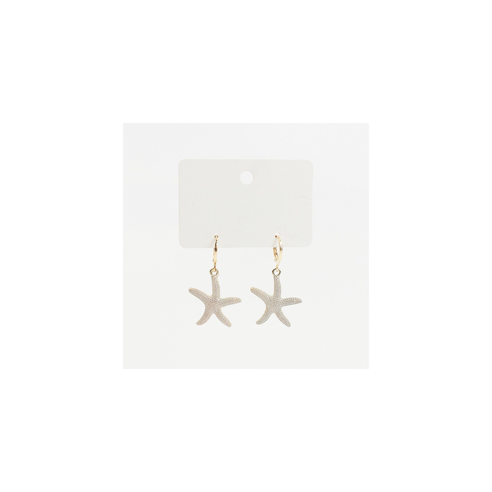 Aro argolla con dije exclusivo en forma de estrella de mar dorada.