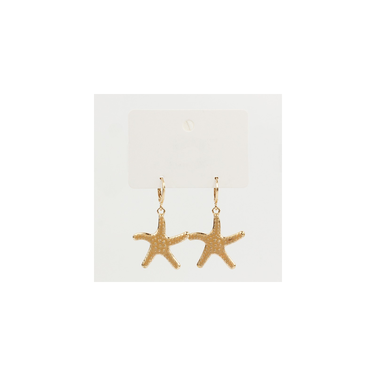 Aro argolla con dije exclusivo en forma de estrella de mar dorado.