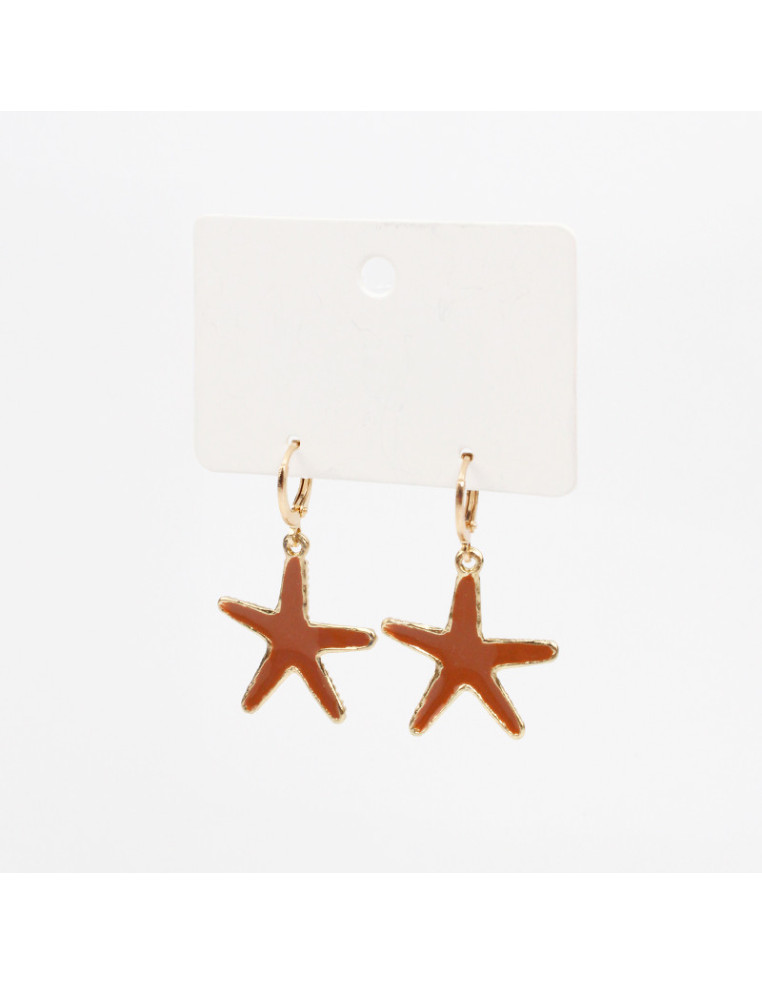 Aro argolla con dije exclusivo en forma de estrella de mar dorado pintado a mano.