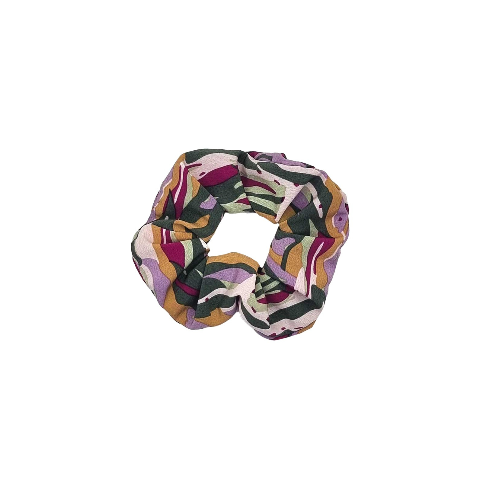 Scrunchie en tela crepe de 12 cm aproximadamente.