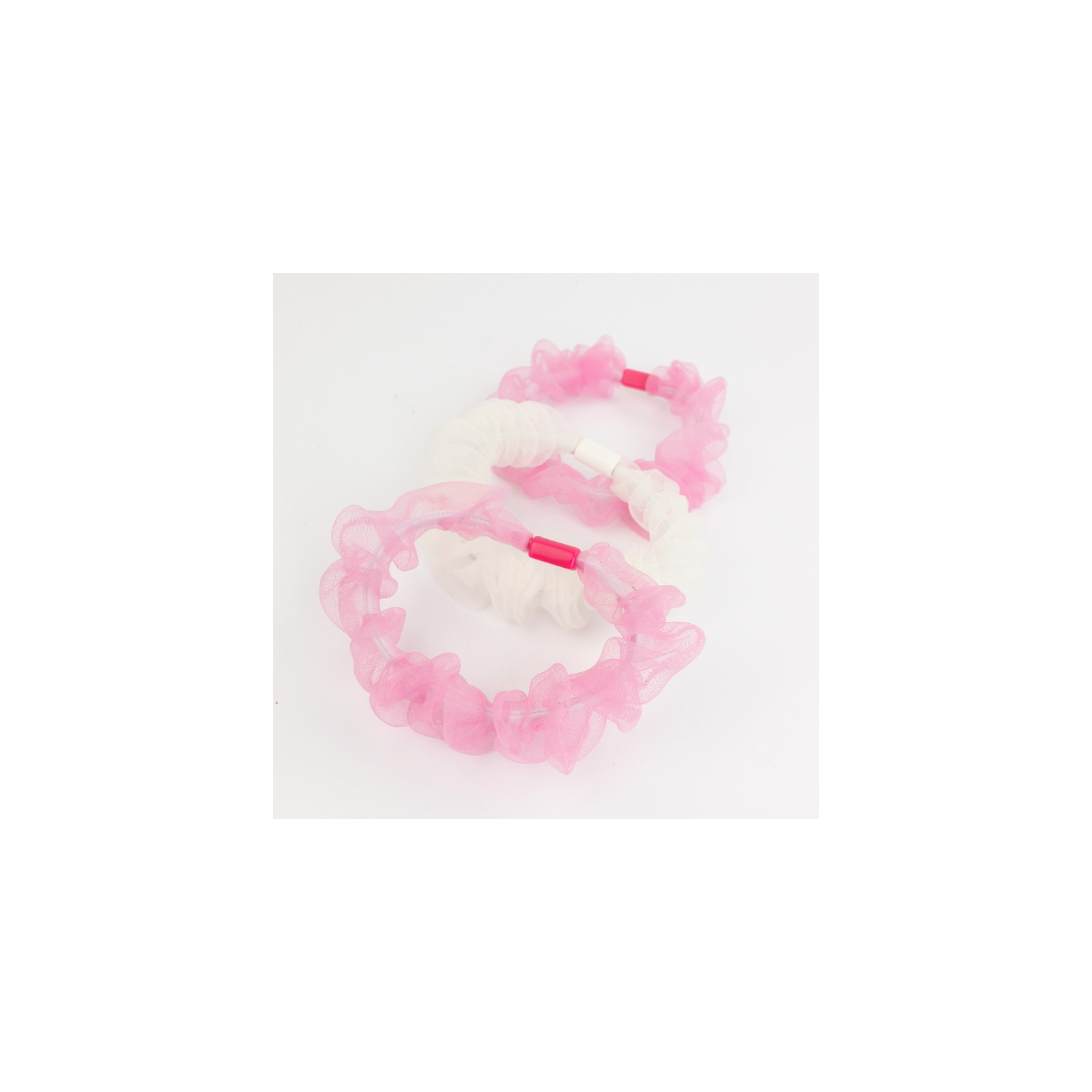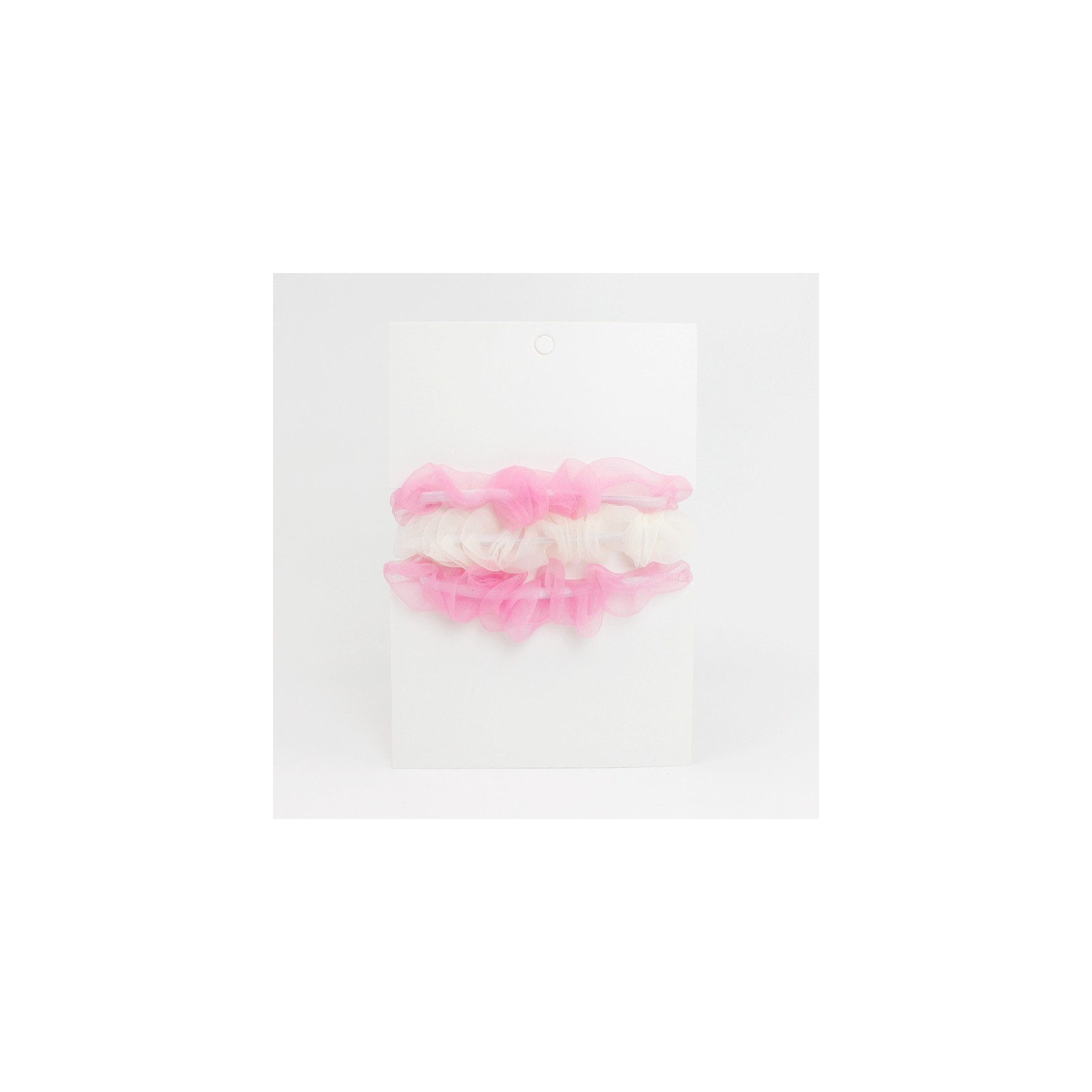 Set de mini scrunchies de tres colores en tela seda cristal.
