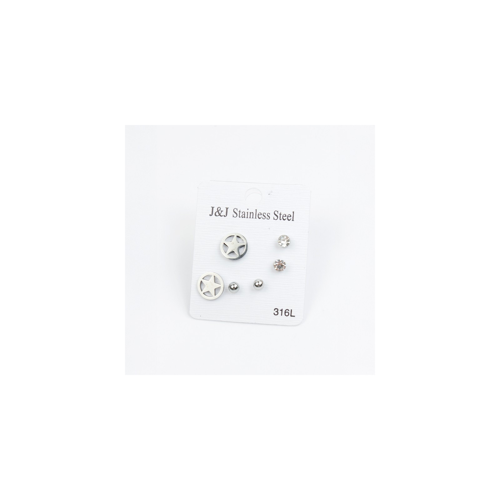 Set de tres pares de aros de acero con aro pasante de strass.