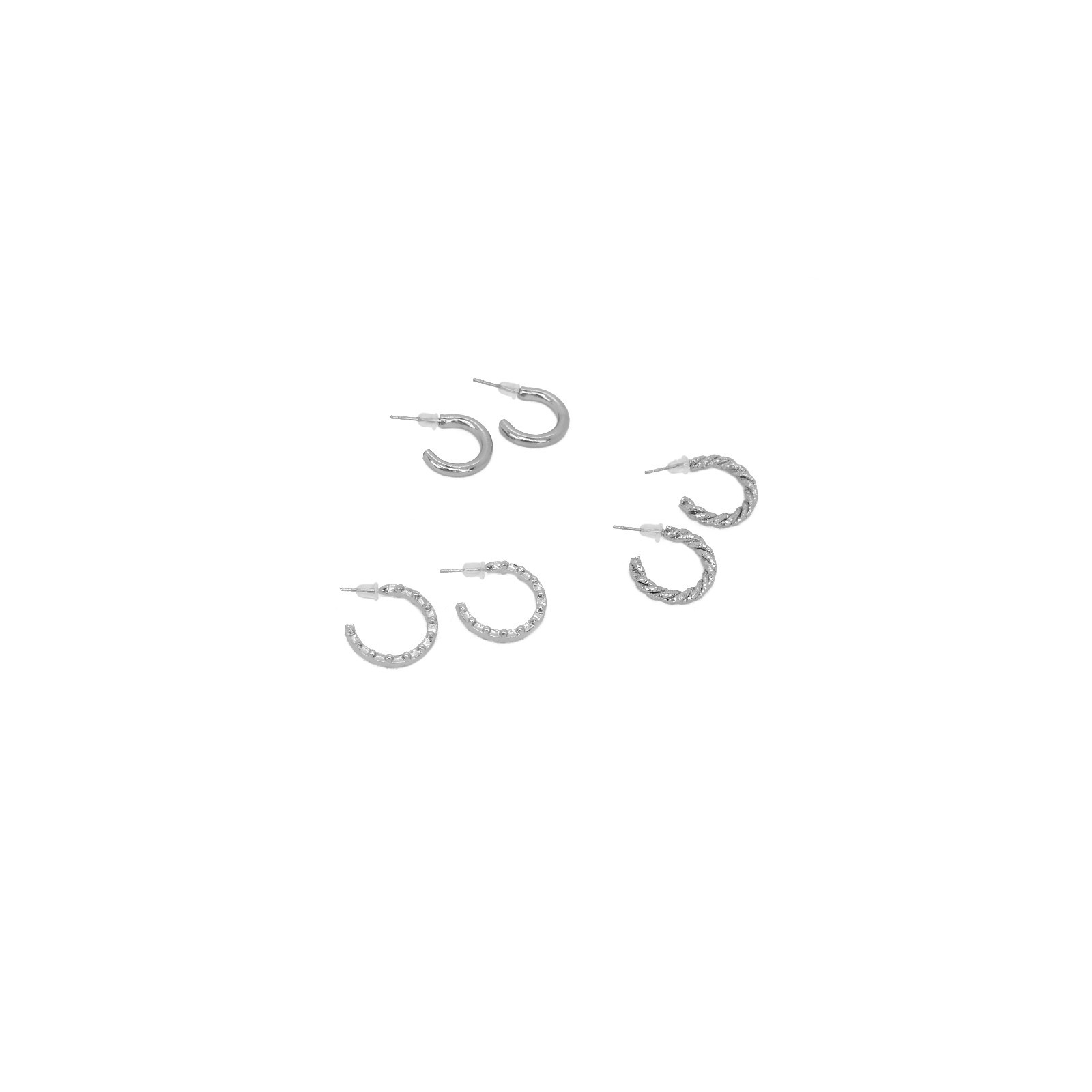 Set de tres pares de argollas níquel.