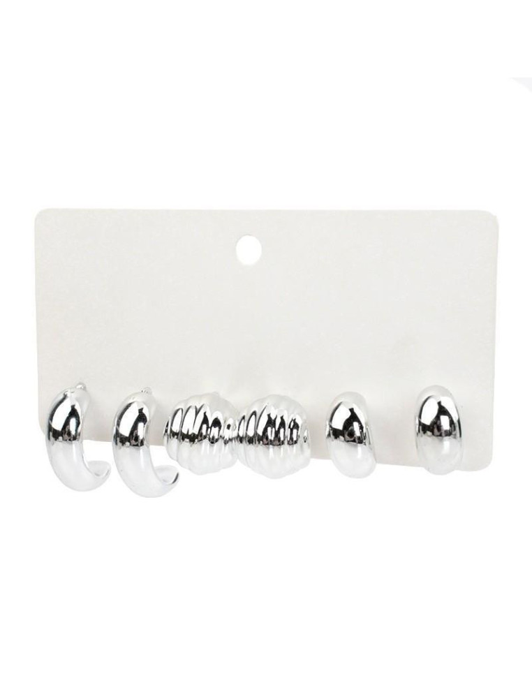 Set de tres pares de aros de CCB níquel.