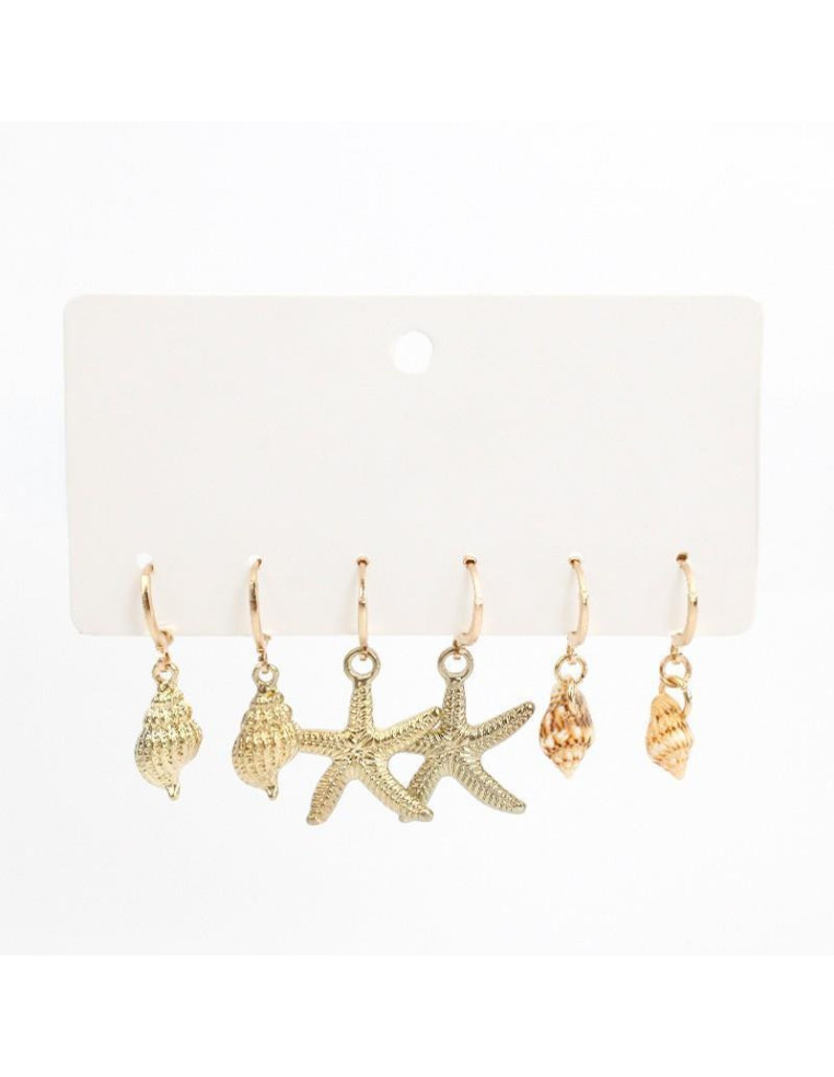 Set de tres pares de aros, de argollas com dijes de diseño playeros.