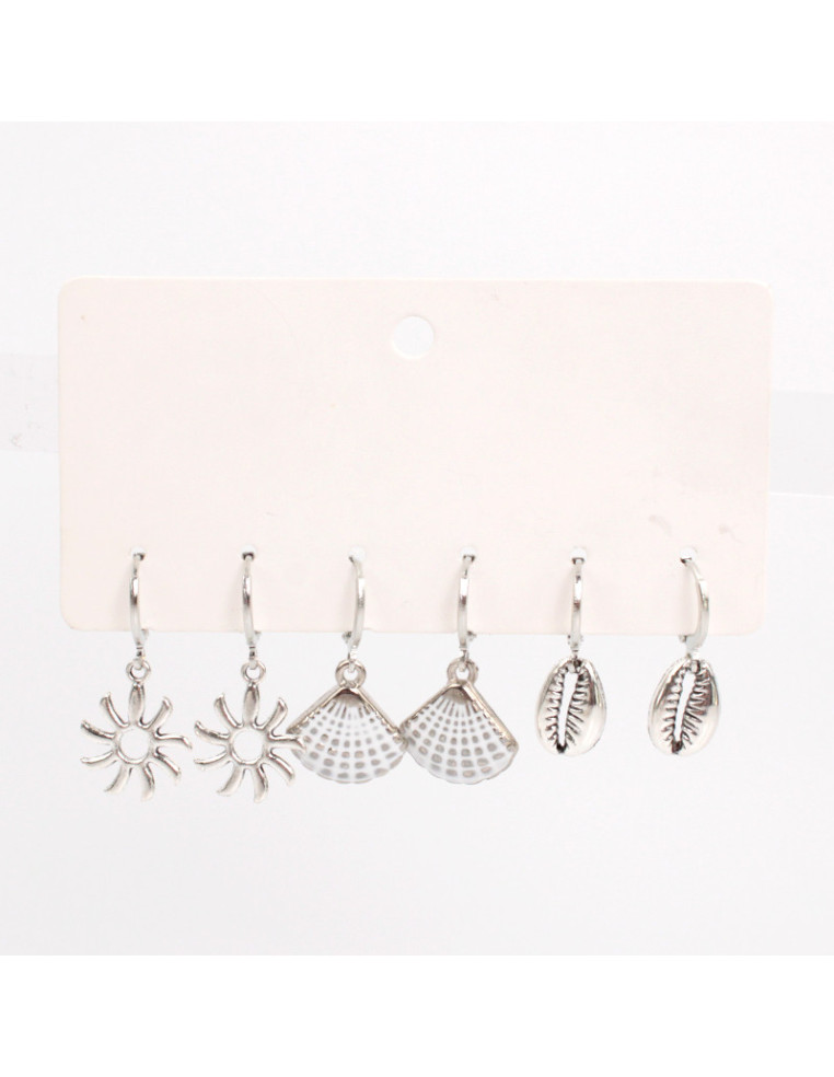 Set de tres pares de aros de dijes marinos.