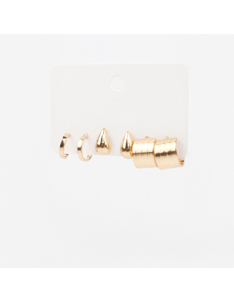 Set de tres pares de argollas de metal dorado.