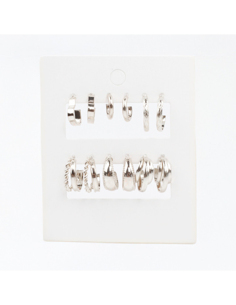 Set de seis pares de aros argolla níquel.