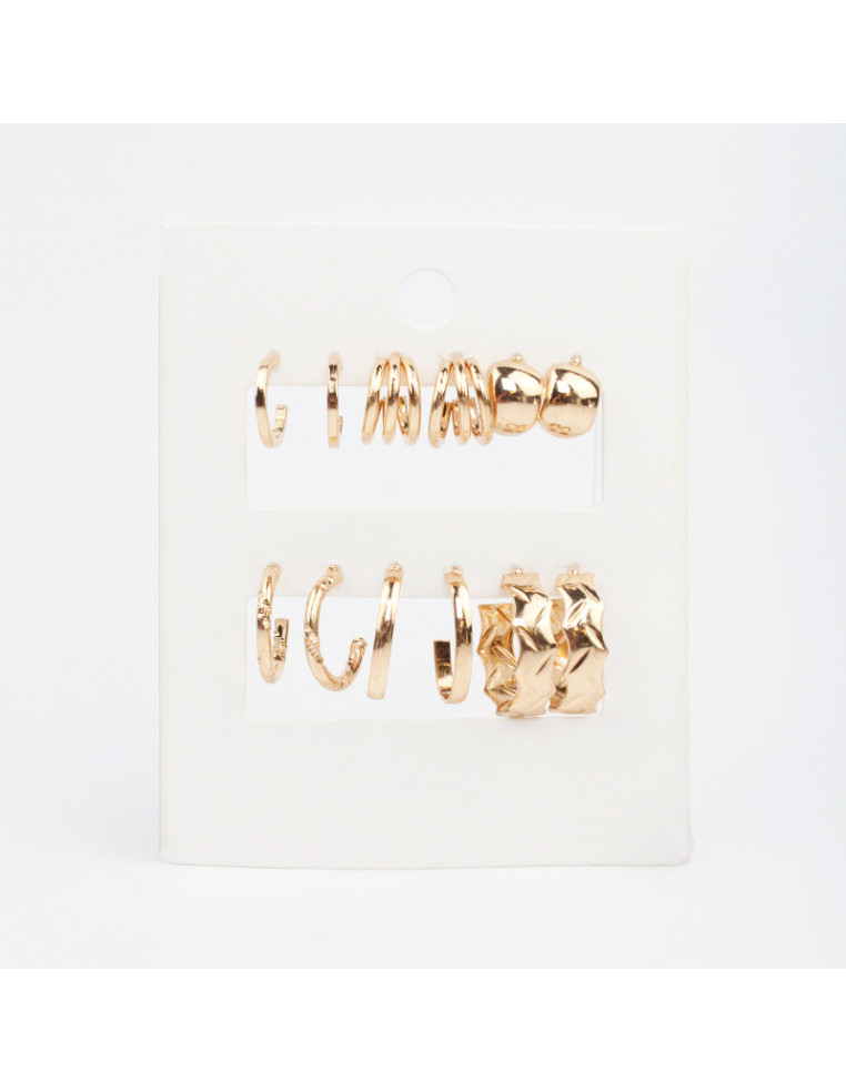 Set de seis pares de aros argolla dorado.