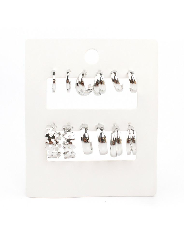 Set de seis pares de aros argolla níquel.