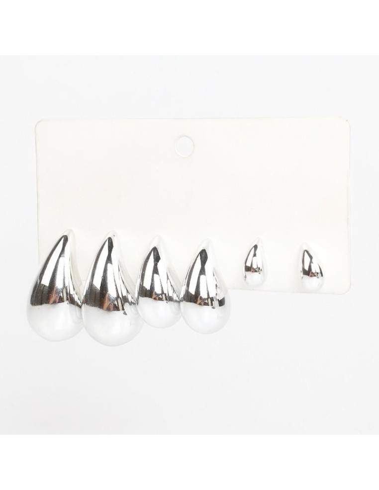 Set de tres pares de aros de CCB gota níquel.