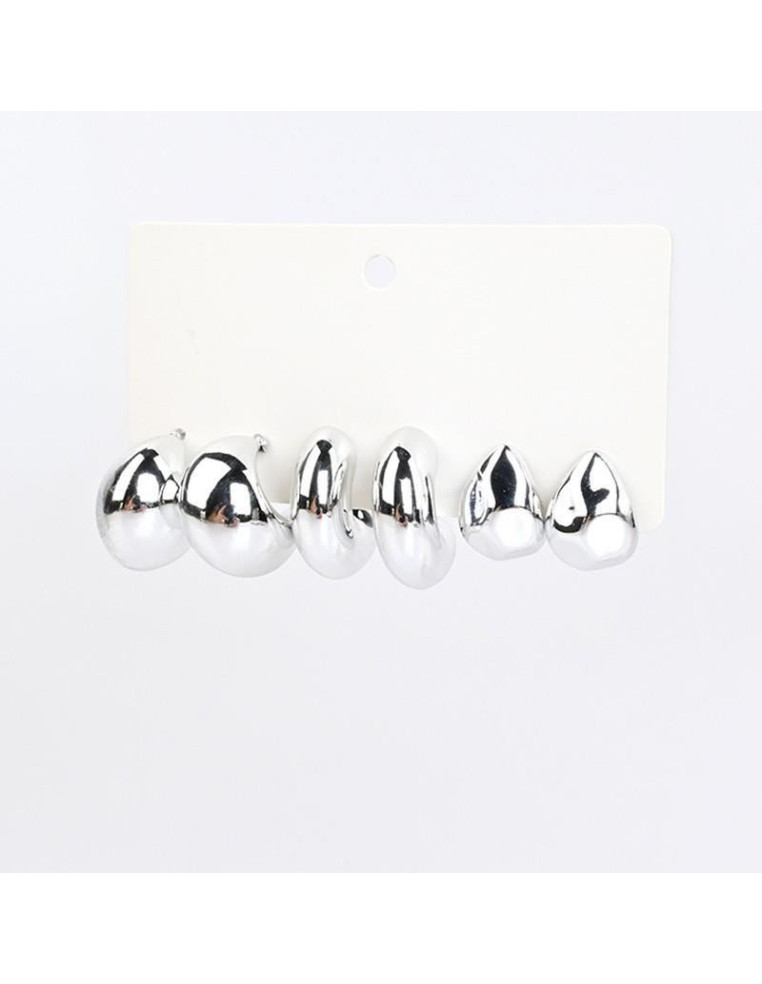 Set de tres pares de aros chunky de formas orgánicas niquel