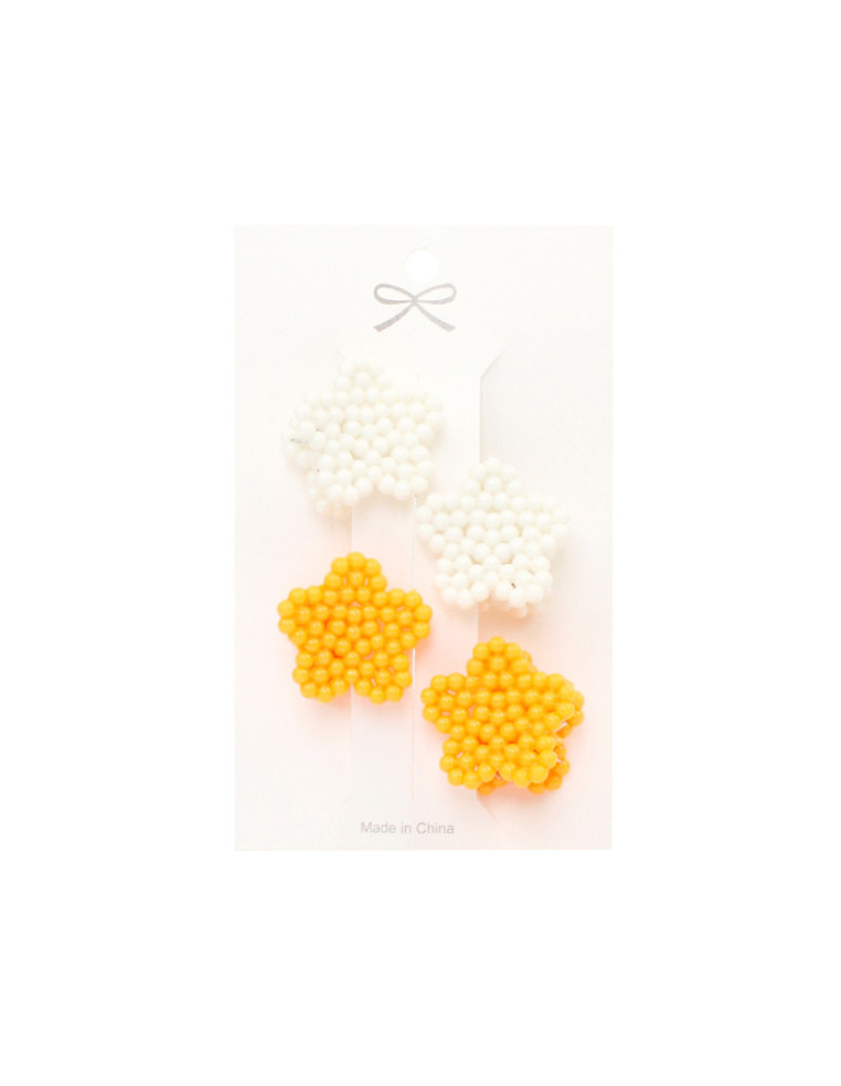 Set de cuatro broches de acrílico para pelo con forma de flor.