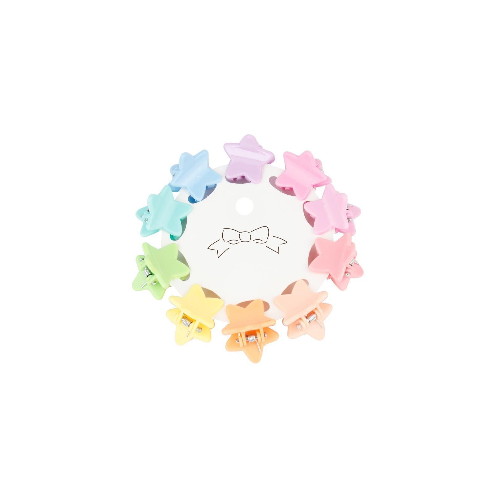 Set de 10 broches para pelo de múltiples colores con forma de estrella.