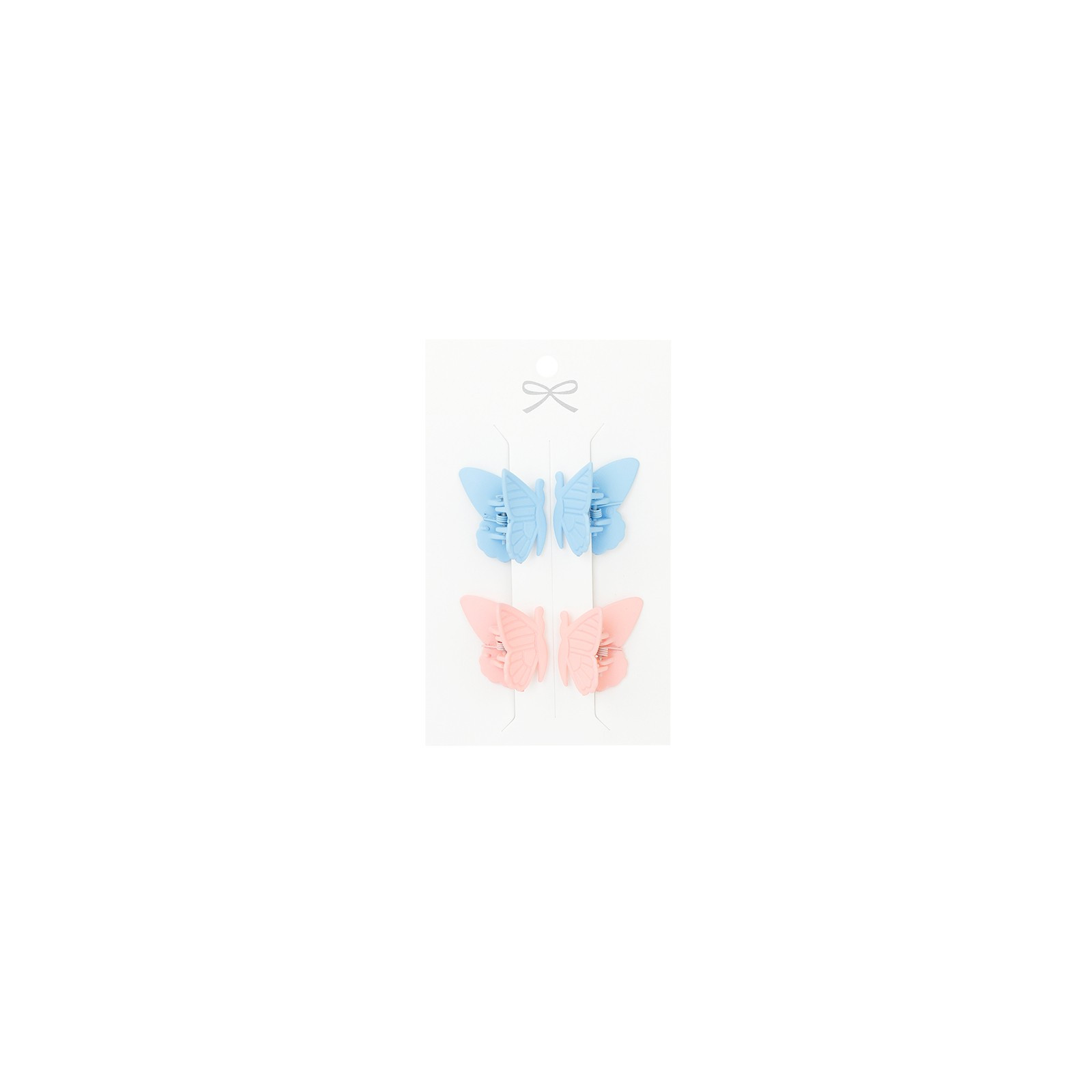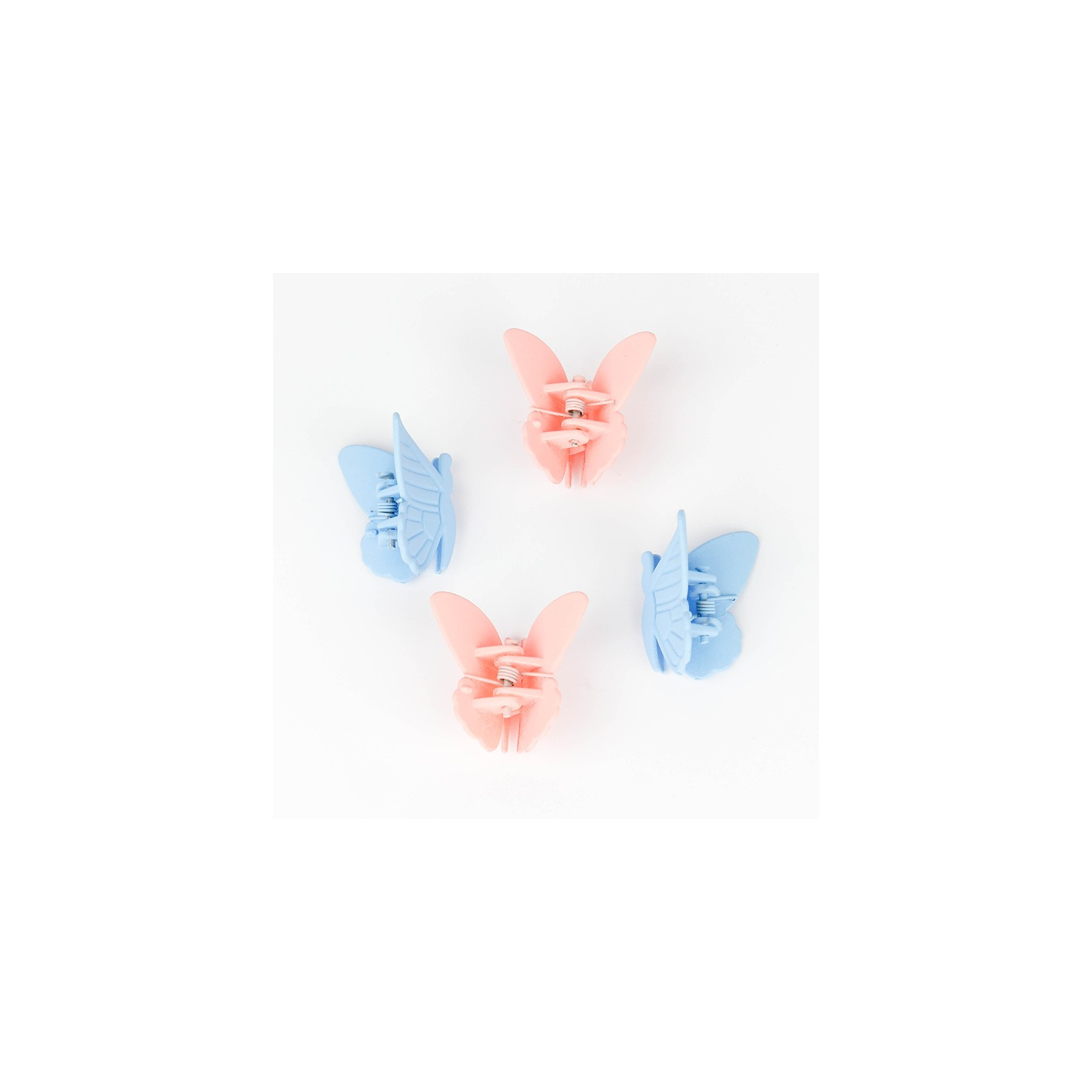 Set de cuatro broches de acrílico para pelo con forma de mariposa.