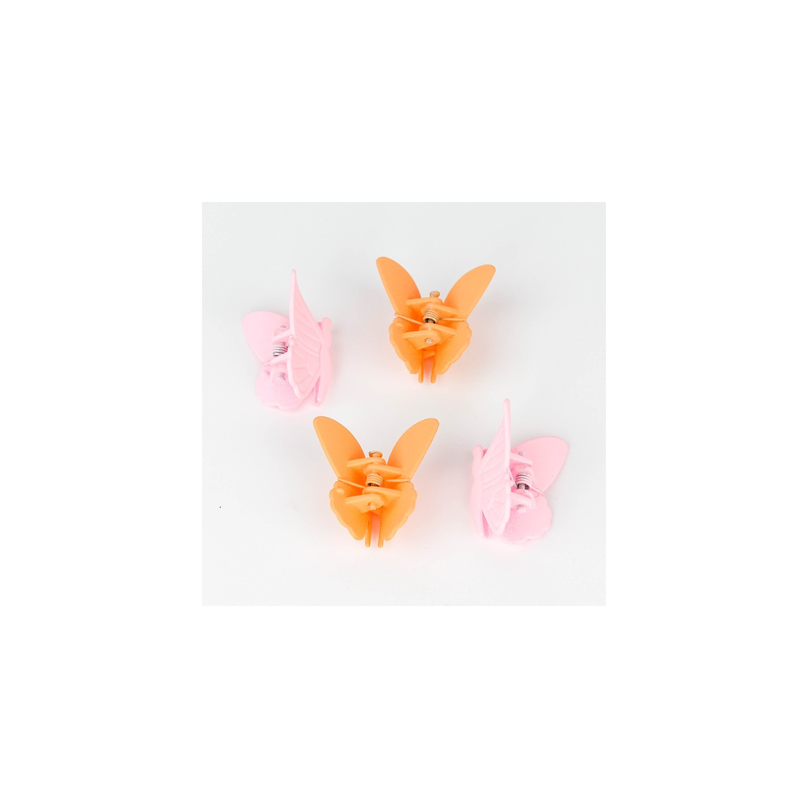 Set de cuatro broches de acrílico para pelo con forma de mariposa.