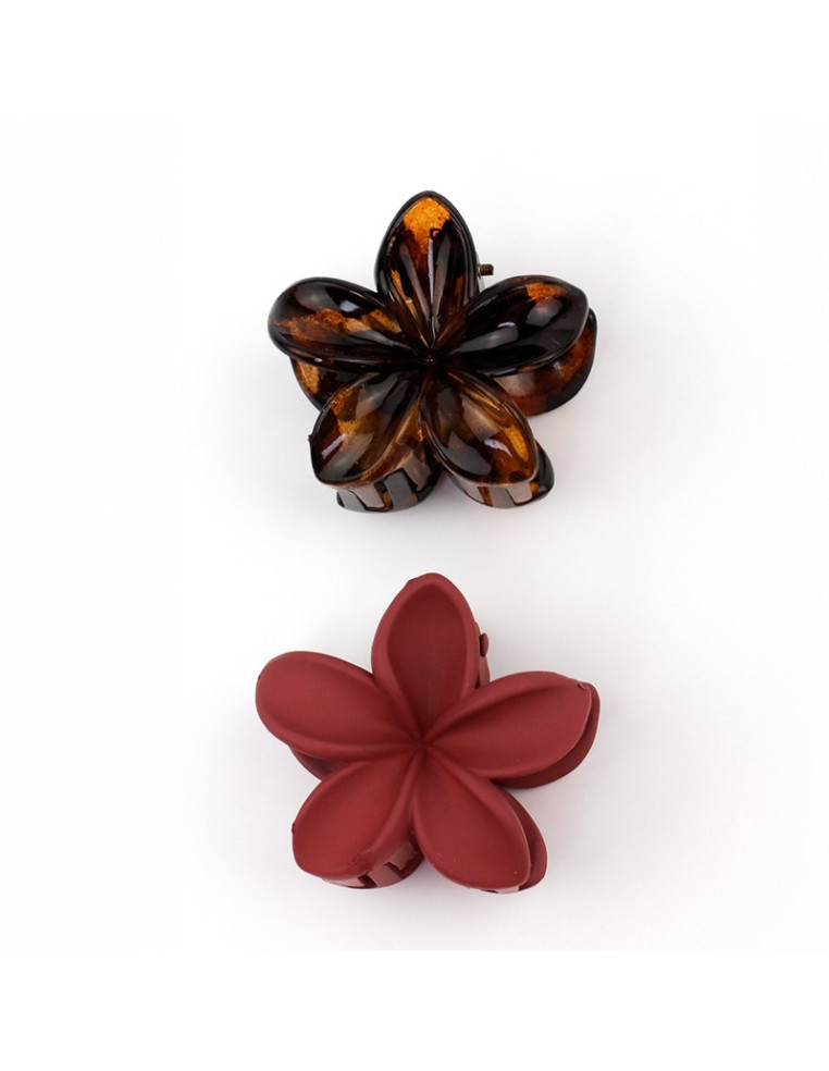 Set de dos broches de acrílico engomados con forma de flor hawaiana.