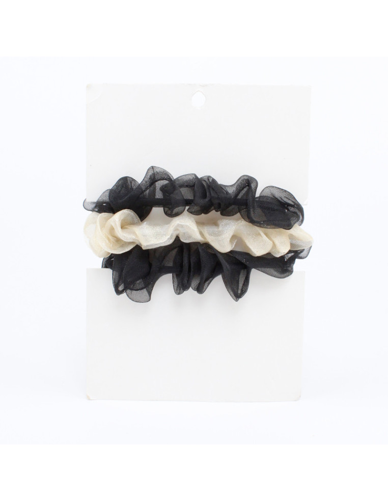 Set de tres scrunchies de tela organza.