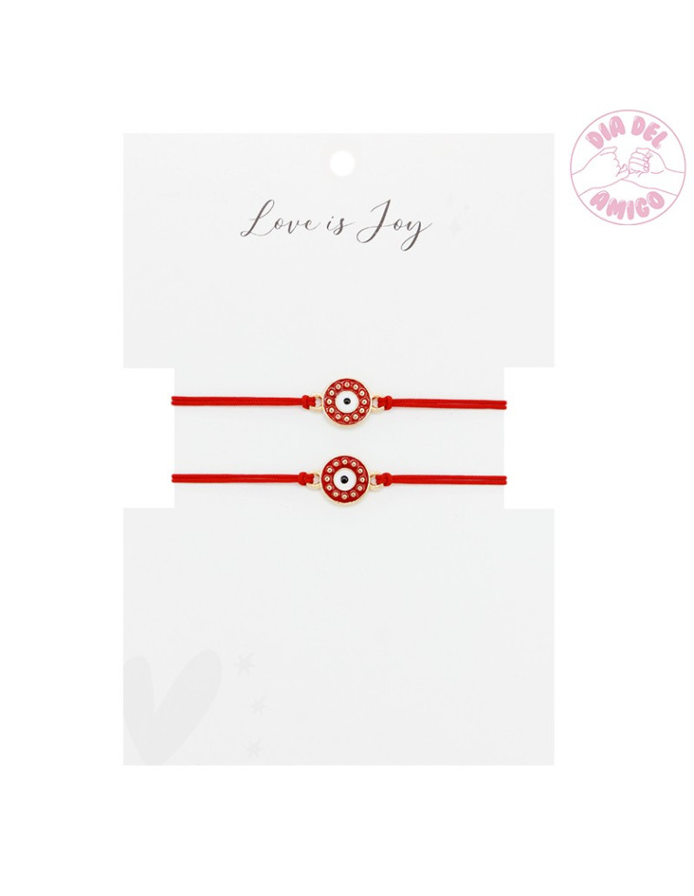 Set de dos pulseras de hilo con dijes exclusivos pintados a mano dorados.