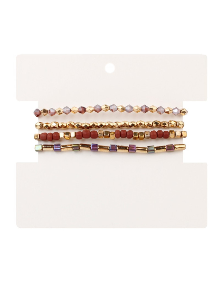 Set x4 de pulseras elásticas de roca de cristal, mostacillas y piezas diferenciadas.
